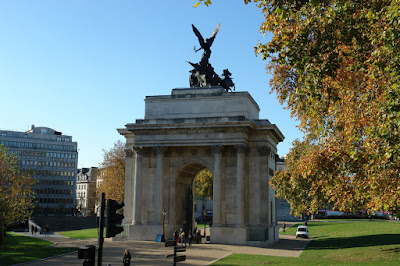 This is a view of one of the fountains in Trafalgar Square. These are pretty large fountains, with a small pool surrounding them; on hot days, they can be a godsend. Just behind the fountain, you can see a building with the Flag of South Africa (South Africa House, the South African high commission) - there were plenty of anti-apartheid demonstrations here during the time when South Africa was ruled on the basis of apartheid.
